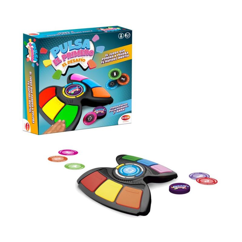 En Pulsa el Primero: El Desafío, los jugadores escuchan preguntas, retos o ven imágenes y deben ser los más veloces en pulsar el botón antes que los demás. ¡Pero cuidado! Si respondes mal, perderás puntos y la victoria se te escapará.